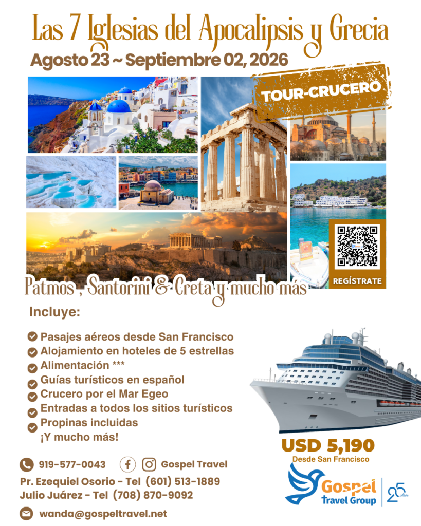 #ViajesCristianos #GospelTravelGroup #CruceroBiblico #TurismoReligioso #GreciaConFe #TourApocalipsis2026
