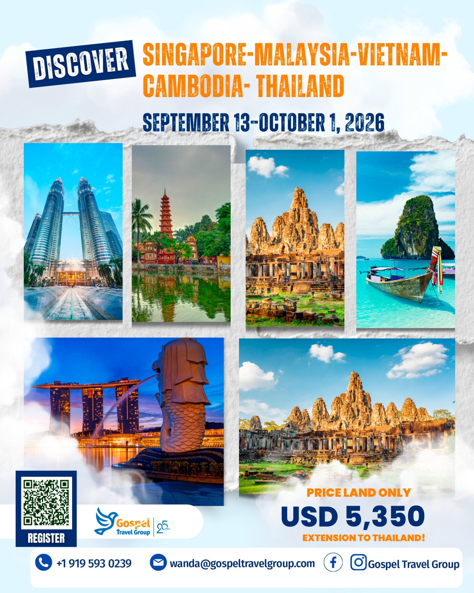 50% Payment: A 50% payment is required by May 13th, 2026 to guarantee reservations, which will be applied to the total tour price.